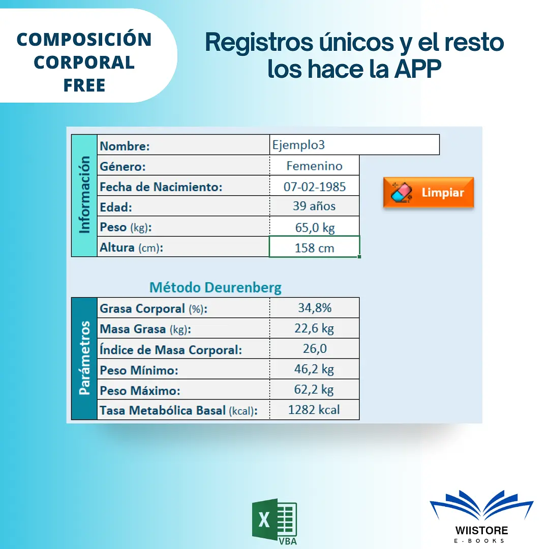 Nuestra Macro Excel para Composición Corporal Free es un regalo para ti estudiante o profesional.